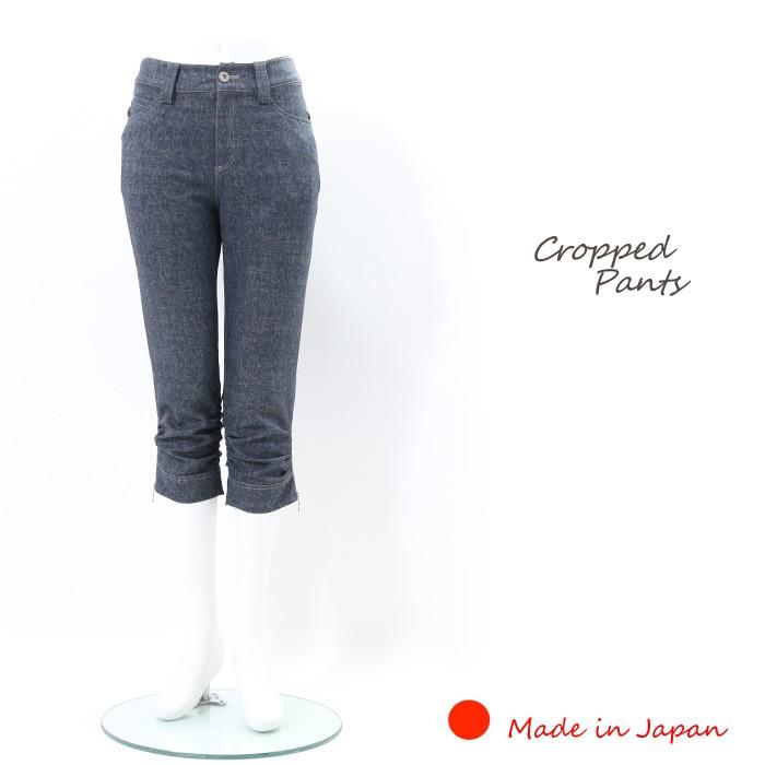 クロップドパンツ 夏 日本製 ストレッチパンツ レディース シャーリング デニム風 サブリナ ミセス アンクル 7分丈 5245 Clease クリーズ 通販 Yahoo ショッピング
